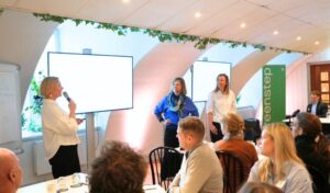Helén Malmberg (Head of L&D, Greenstep Sweden) puhui millaista johtajuutta tilanne vaatii, ja kuinka tärkeää on, että johto todella omistaa AI-kehityksen. Muutoksessa ei riitä, että teknologia kehittyy; johtajien on samalla kehityttävä mukana ja luotava psykologisesti turvallinen ympäristö oppimiselle, vanhasta poisoppimiselle ja uuden luomiselle.