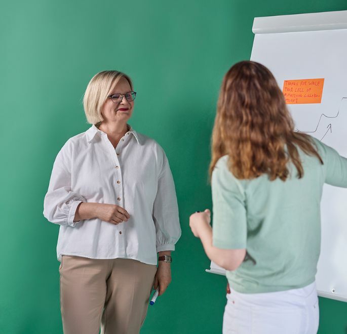 Vår praktiska utbildning ger chefer möjlighet att fatta bättre beslut, kommunicera tydligt, stärka samarbetet och effektivt leda förändringar med självsäkerhet.