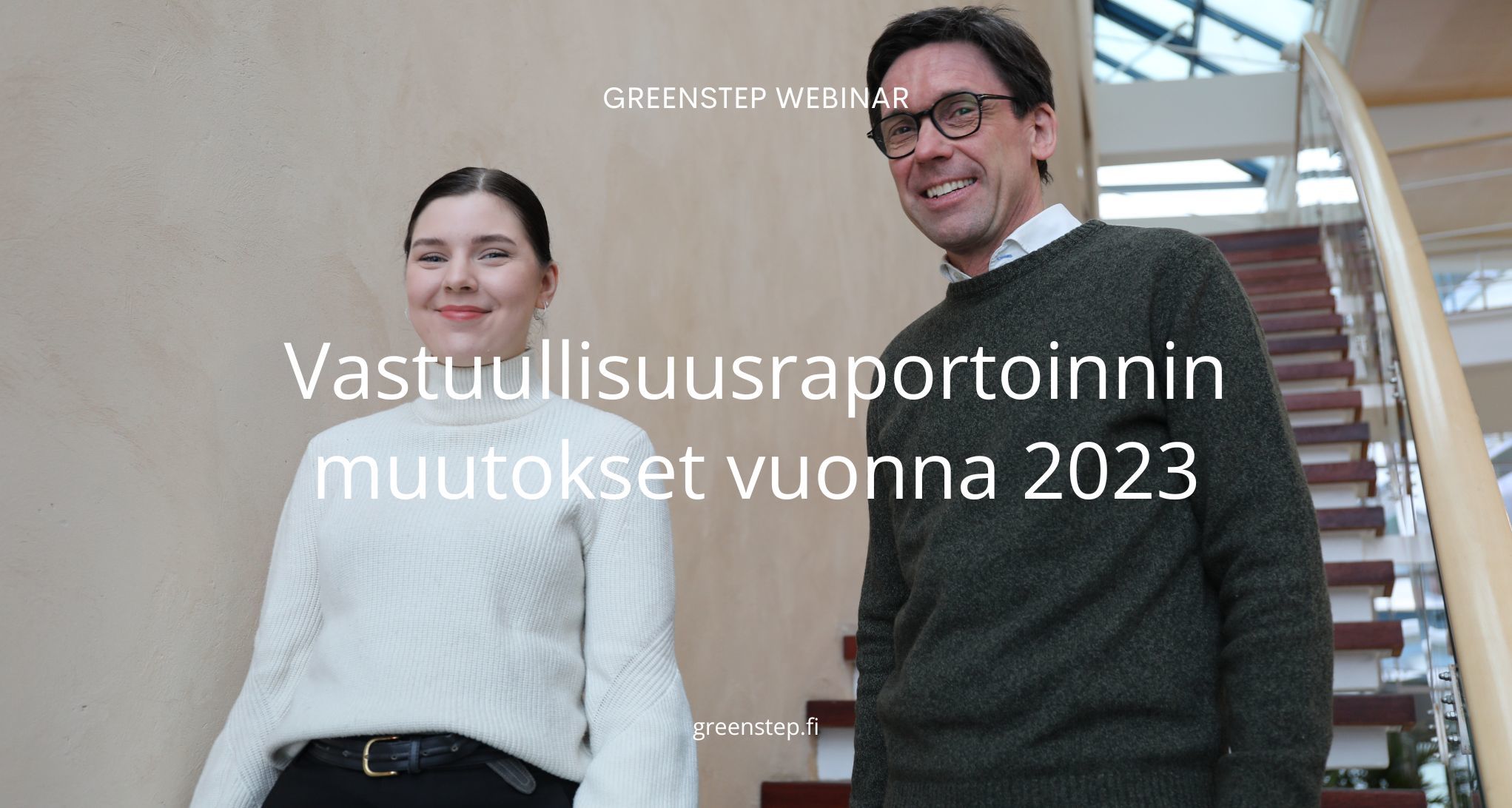 Greenstepin vastuullisuuspalveluiden asiantuntijat Otto Lehtipuu ja Eeva Perälä kertoivat webinaarissa vastuullisuusraportoinnista ja sen muuttuvasta sääntelystä (vastuullisuusraportoinnin direktiivi CSRD).